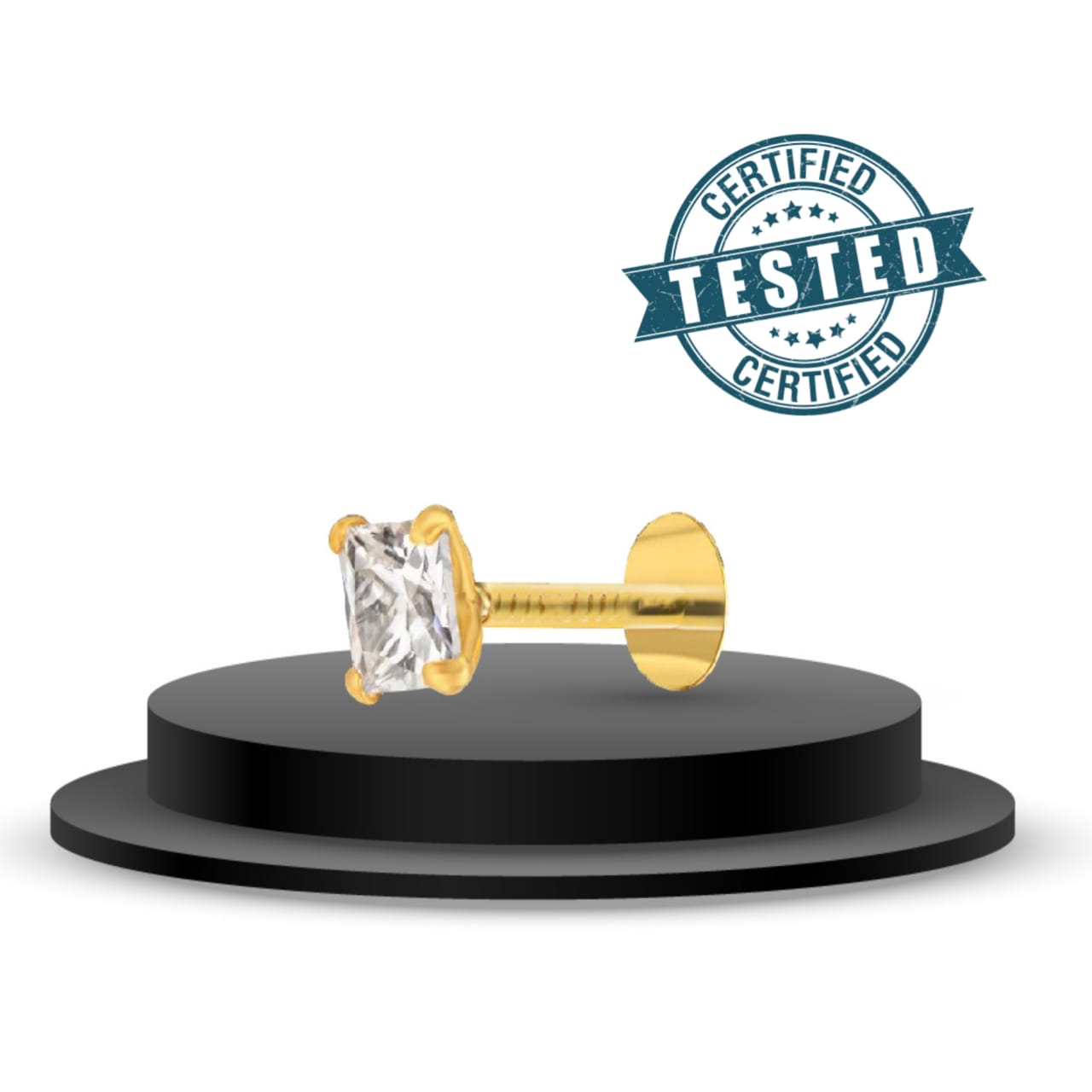 আমাদের প্রত্যেকটি নোজ-পিন (নাকফুল) আন্তর্জাতিকভাবে স্বীকৃত ল্যাব দ্বারা পরিক্ষীত এবং প্রডাক্টের গায়ে খোদাইকৃত 18K KDM হলমার্ক করা, তাই আপনি নিশ্চিতে আমাদের কাছ থেমে ক্রয় করতে পারেন। শতভাগ বিশুদ্ধ আঠারো ক্যারেট গোল্ড।
