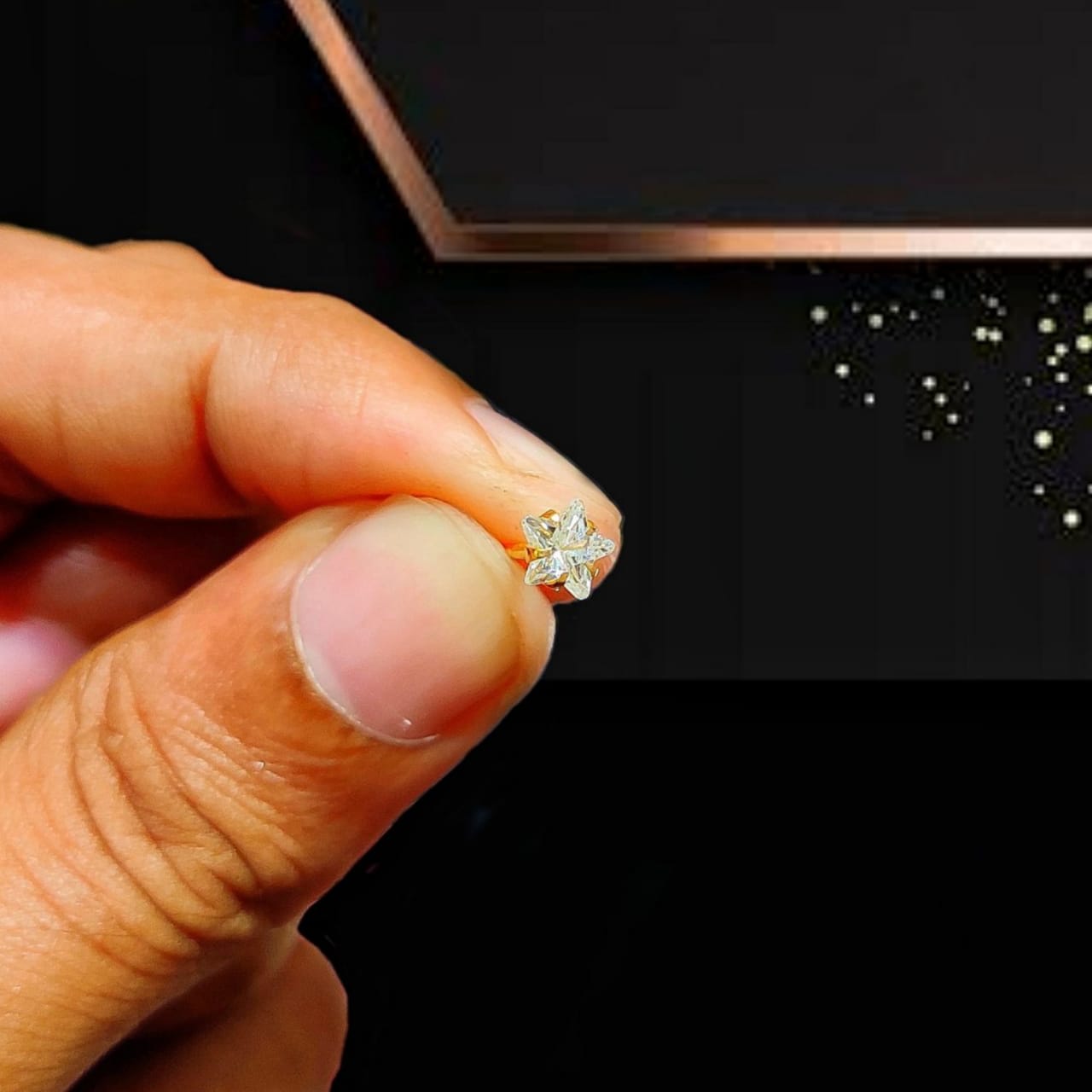 - Hallmarked 1 Stone Star Shape Nose pin 7ct (White Color)