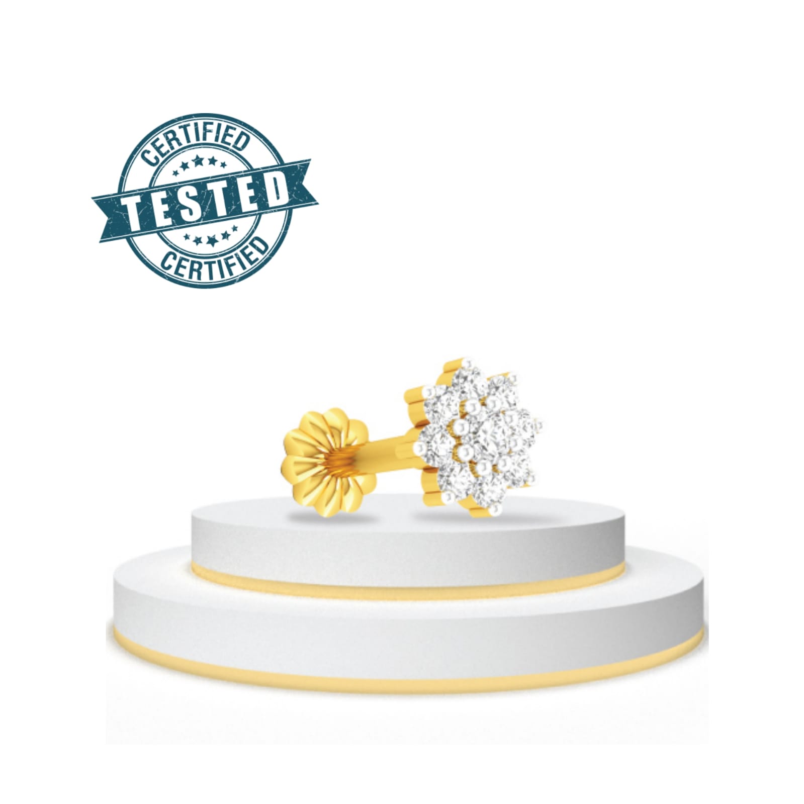আমাদের প্রত্যেকটি নোজ-পিন (নাকফুল) আন্তর্জাতিকভাবে স্বীকৃত ল্যাব দ্বারা পরিক্ষীত এবং প্রডাক্টের গায়ে খোদাইকৃত 18K KDM হলমার্ক করা, তাই আপনি নিশ্চিতে আমাদের কাছ থেমে ক্রয় করতে পারেন। শতভাগ বিশুদ্ধ আঠারো ক্যারেট গোল্ড।